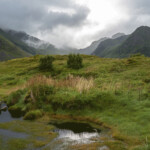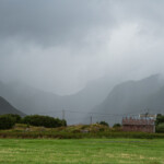 Da kam auch schon der erste Regenschauer über die Berge heran. Aber ich hatte die Hardshell-Regenhose und Regenjacke im Rucksack mitgenommen.