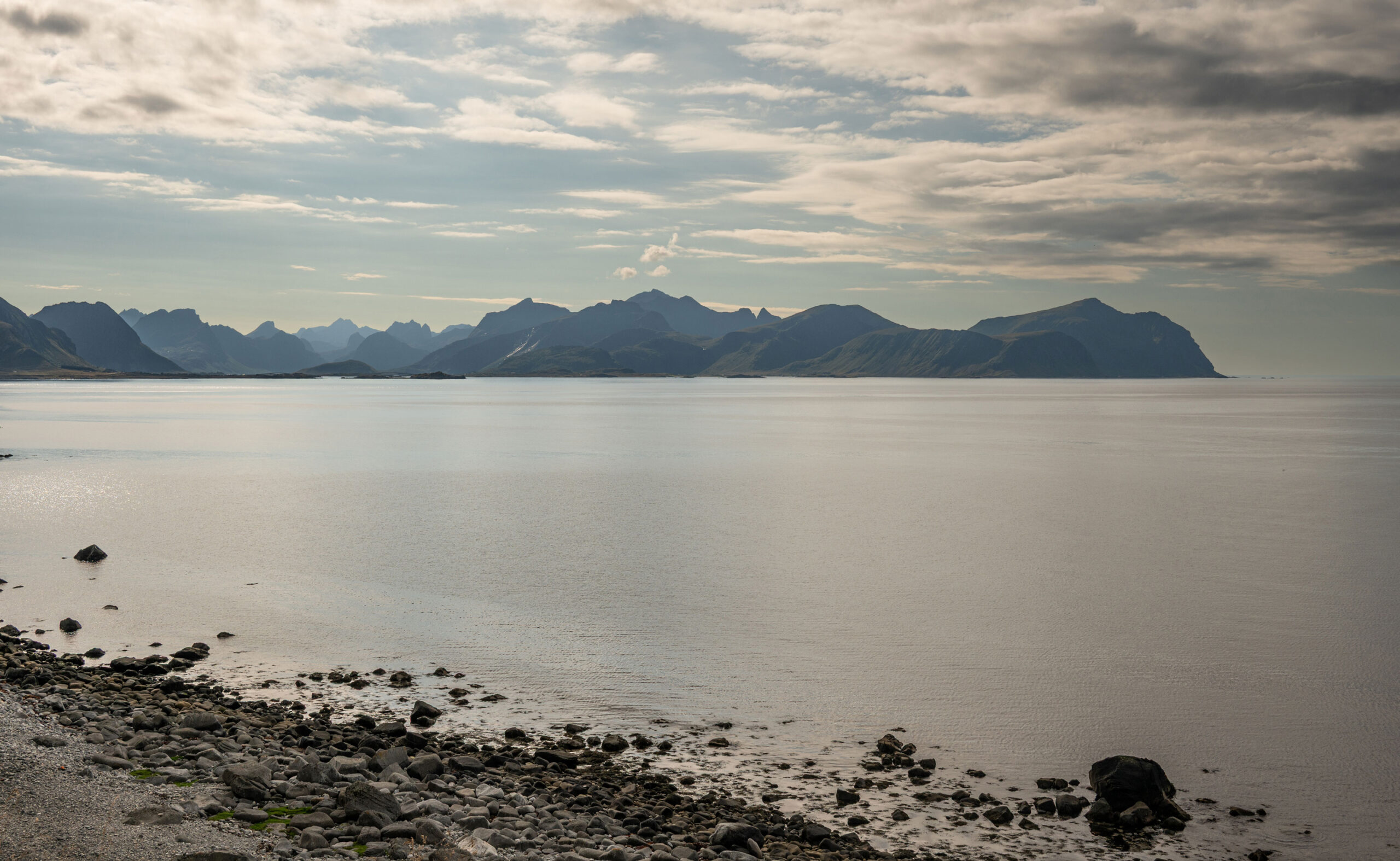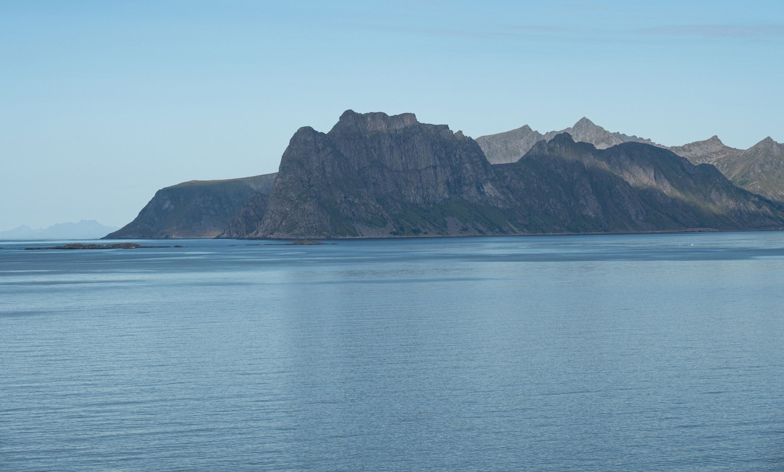 Nach eins sind wir losgefahren in Richtung Leknes und weiter auf der E10 bis kurz vor Gravdal, wo die E10 rechts abbiegt. Dann ging es an der Küste entlang bis hinter nach Vikten, dem letzten Dorf am Ende der Straße. Auch hier an der Küste waren wieder sehr viele Camper. Deshalb haben die Anwohner überall neben der Straße Parkverbots- und “no camping”-Schilder aufgestellt, damit nicht auch noch die letzte freie Bucht am Meer zugestellt wird.
