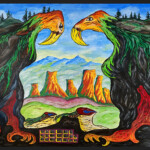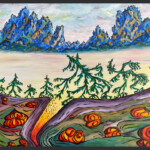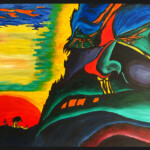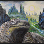 Heute male ich nur noch in Acryl und nicht mehr ganz so farbenfroh wie früher. Ich lasse mich inspirieren von faszinierenden, fast surrealen Landschaften und Wesen, generiert mit KI, die ich beim Malen zu Grunde legen und nach meinen Vorstellungen umgestalten kann.
