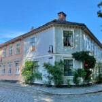 Von Skjærhalden aus. sind wir zurück nach Fredrikstad gefahren. Die Stadt wird durch einen breiten Fluss geteilt, den wir mit der Fähre überquert haben, um in die Altstadt, Gamlebyen zu gelangen. Hier stehen noch einige ursprüngliche Holzhäuser und auf einem weiten Platz die Statue von Frederik II. Auf den Resten der sternförmig angeordneten Stadtmauer mit den ehemaligen Wassergräben davor kann man spazieren gehen. Ziemlich müde vom vielen Schauen sind wir dann heimgefahren.